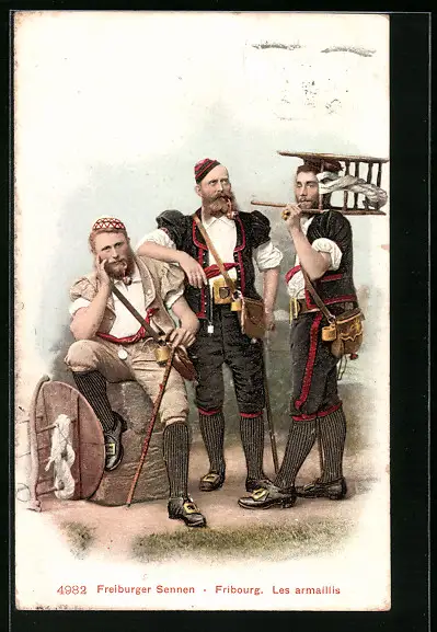 AK Freiburger Sennen in Tracht mit Tabakspfeife