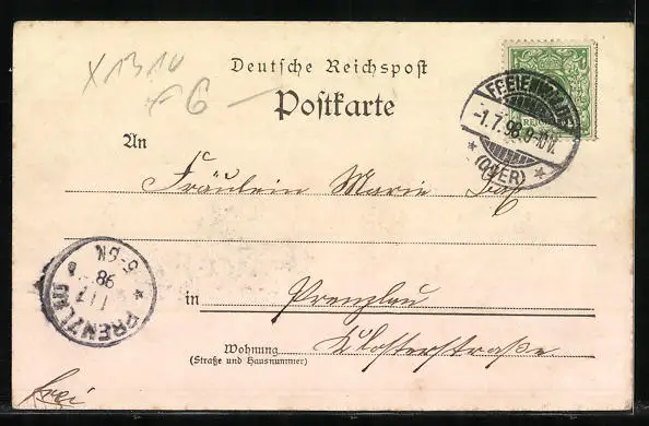 alte Ansichtskarte, gelaufen 1898, Stempelspur, guter Zustand