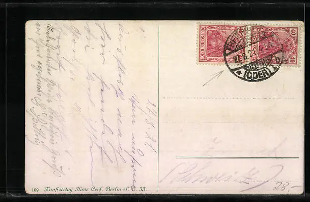 alte Ansichtskarte, gelaufen 1921, kleiner Oberflächenschaden linkes obere Eck, guter Zustand