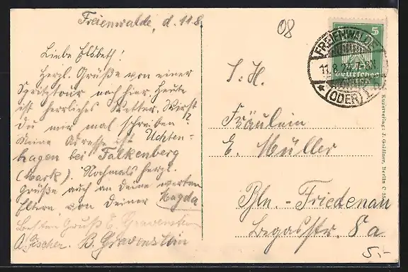 AK Freienwalde a. O., Blick auf das Brunnental