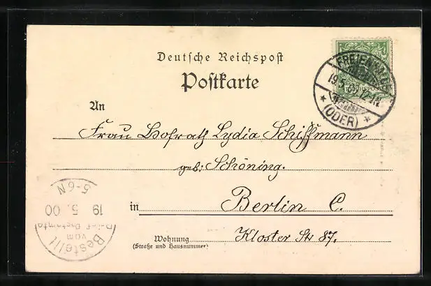 alte Ansichtskarte, gelaufen 1900, guter Zustand