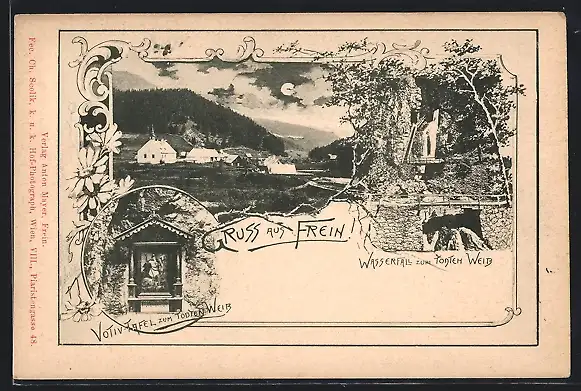 AK Frein, Wasserfall zum Todten Weib, Votivtafel beim Todten Weib
