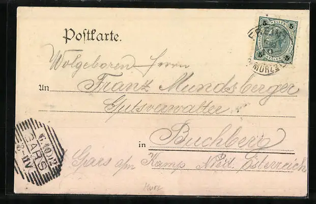 alte Ansichtskarte, gelaufen 1902, Eckknick re. oben, guter Zustand
