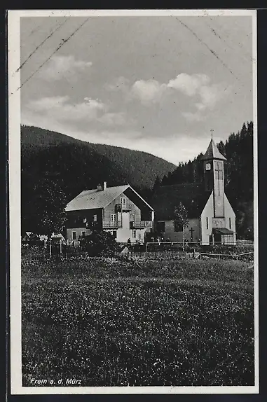 AK Frein a. d. Mürz, Kirche mit Nebengebäude