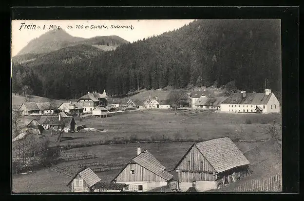AK Frein a. d. Mürz, Ortsansicht mit Bergpanorama