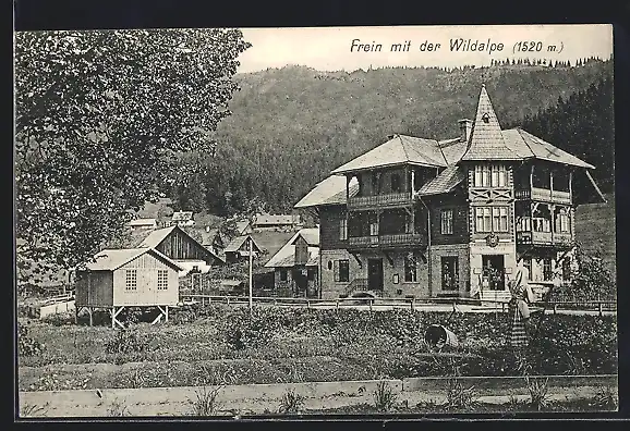 AK Frein an der Mürz, Ortspartie mit der Wildalpe