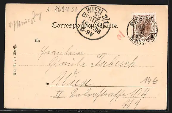 alte Ansichtskarte, gelaufen 1898, guter Zustand