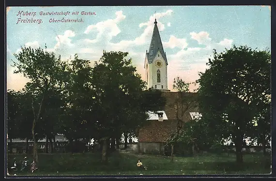 AK Freinberg /Ober-Österreich, Hubers Gasthaus mit Garten