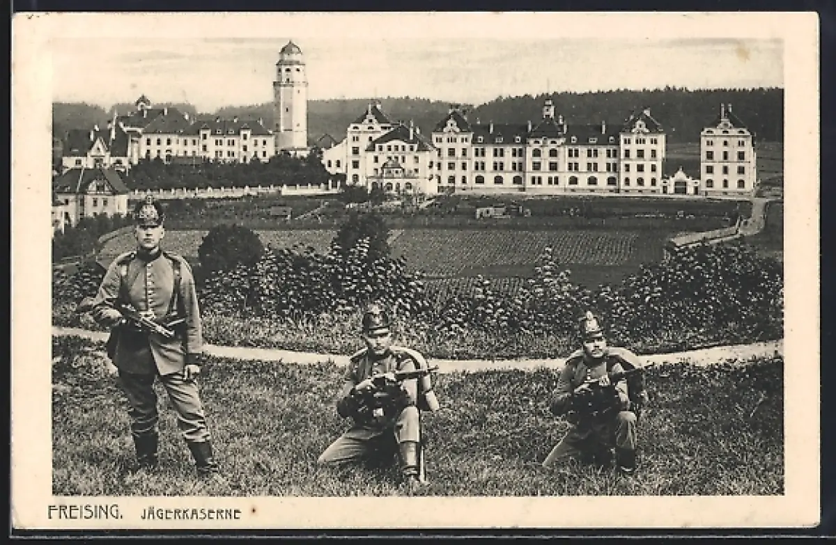 AK Freising, Blick auf die Jägerkaserne, Jäger im Felde