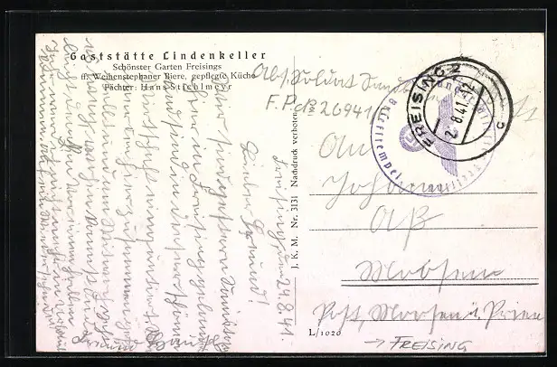 AK Freising, Gasthaus Lindenkeller von Hans Stichlmeyr