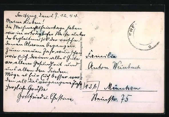 alte Ansichtskarte, gelaufen 1944, Briefmarke entfernt, Eckknick unten rechts, guter Zustand