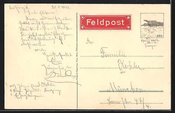 ungelaufen, Rückseite beschrieben 1918, guter Zustand