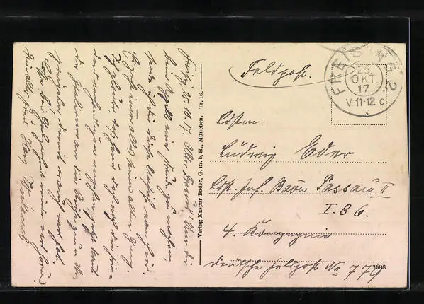 gelaufen als Feldpost 1917, guter Zustand