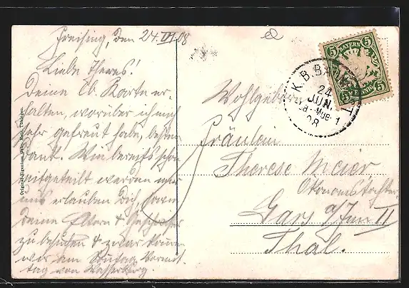 alte Ansichtskarte, gelaufen 1908, guter Zustand