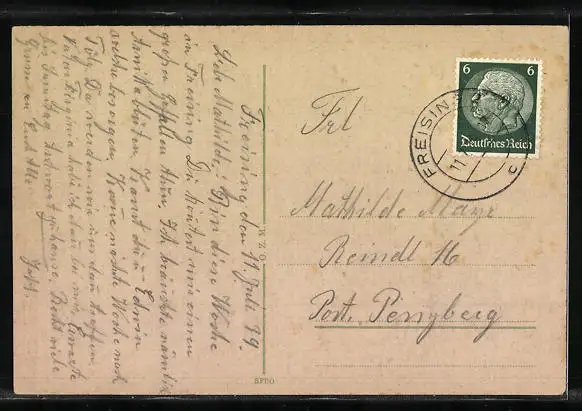 alte Ansichtskarte, gelaufen, Eckknick links oben, guter Zustand
