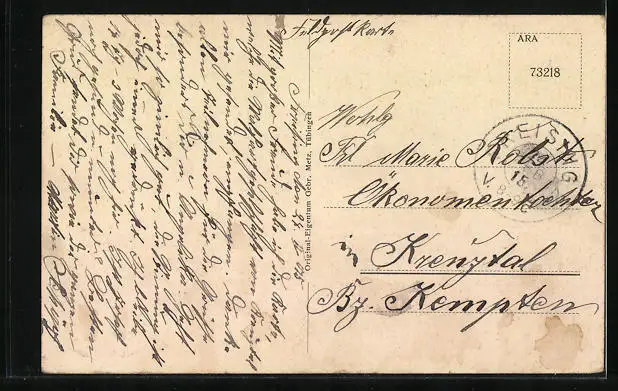 alte Ansichtskarte, gelaufen 1915, Eckknicke re., guter Zustand