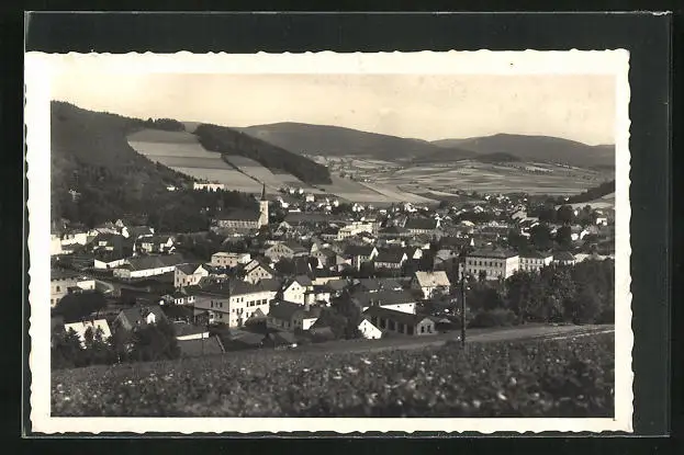 AK Freiwaldau, Celkovy pohled, Ortsansicht von einer Anhöhe aus
