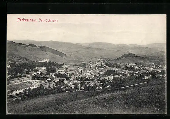 AK Freiwaldau, Celkovy pohled, Panorama mit Ort und Umgebung