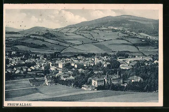 AK Freiwaldau, Totalansicht aus der Vogelschau