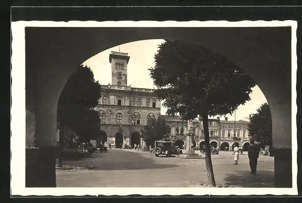 AK Frenstat pod Radh., Strassenpartie mit Schule durch Tor