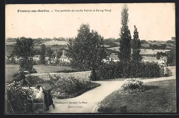 AK Fresnay-sur-Sarthe, Vue partielle du Jardin Public et Bourg-Neuf