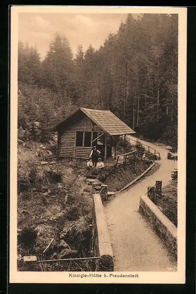 AK Freudenstadt, Kinzigle-Hütte mit Besuchern