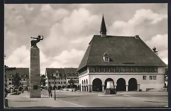 AK Freudenstadt /Schwarzwald, Stadthaus mit Gedenksäule