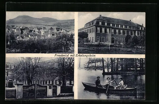 AK Freudental, Erholungsheim, Bootspartie, Ortsansicht