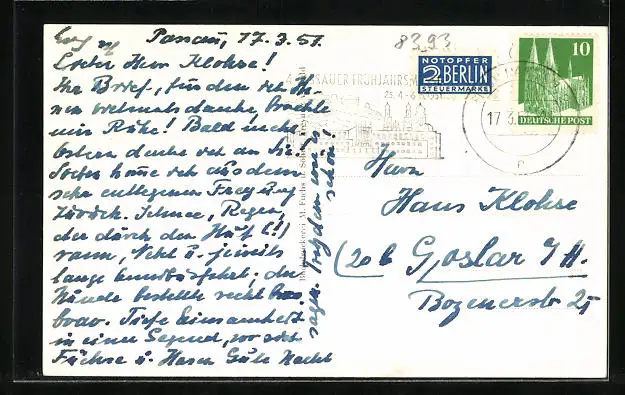 alte Ansichtskarte, gelaufen 1951, guter Zustand
