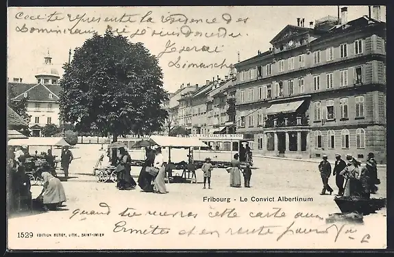 AK Fribourg, Le Convict Albertinum, Strassenbahn