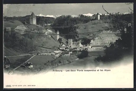 AK Fribourg, Les deux Ponts suspendus et les Alpes