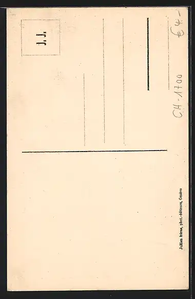 Personenbezogene Daten auf der Rückseite der Karte wurden durch blauen Textmarker unkenntlich gemacht. Die blauen Stellen sind auf die Vorderseite durchgeweicht und wirken sich negativ auf das Postkartenfoto aus