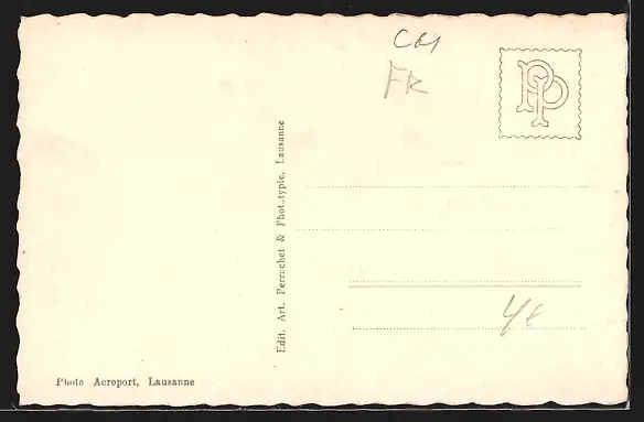 Personenbezogene Daten auf der Rückseite der Karte wurden durch blauen Textmarker unkenntlich gemacht. Die blauen Stellen sind auf die Vorderseite durchgeweicht und wirken sich negativ auf das Postkartenfoto aus