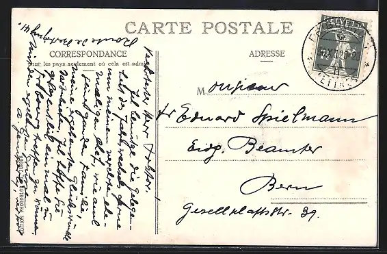 gelaufen 1920, Klebe- und Papierrest unten re., guter Zustand