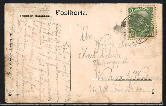 alte Ansichtskarte, gelaufen 1914, Eckknick li. oben, Abriebspur re. unten, guter Zustand