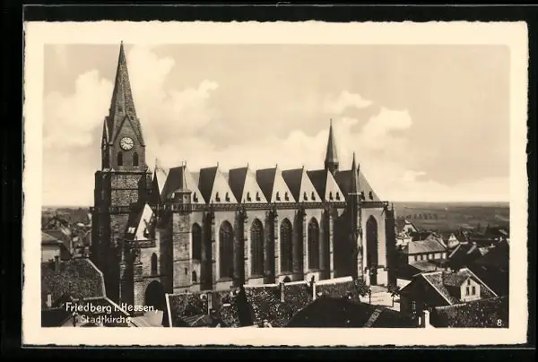 AK Friedberg i. H., Stadtkirche aus der Vogelschau