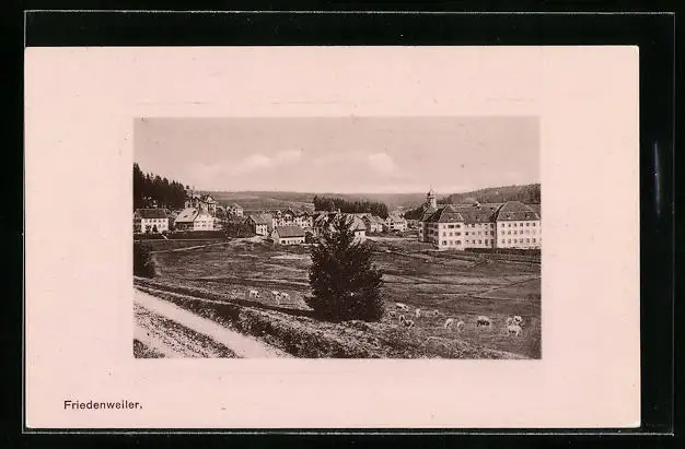 AK Friedenweiler, Ortsansicht aus der Vogelschau im Passepartout-Rahmen