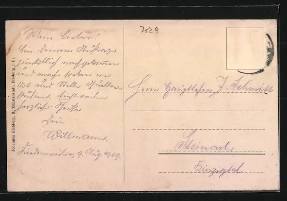 alte Ansichtskarte, gelaufen 1909, Briefmarke entfernt, Eckknick re. unten, guter Zustand