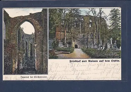 AK Friedhof und Ruinen auf dem Oybin - Inneres der Kirchenruine, gelaufen von 1906