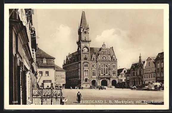 AK Friedland i. B., Marktplatz mit Sparkasse