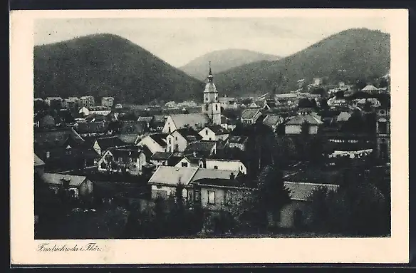 AK Friedrichroda, Ortsansicht mit Kirche und Bergblick