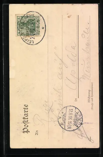 alte Ansichtskarte, gelaufen 1906, Albumsputen oben u. unten, Eckknick oben li., guter Zustand