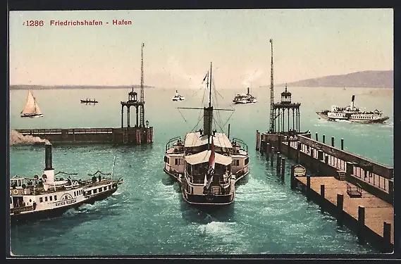 AK Friedrichshafen /Bodensee, Hafen mit Dampfern