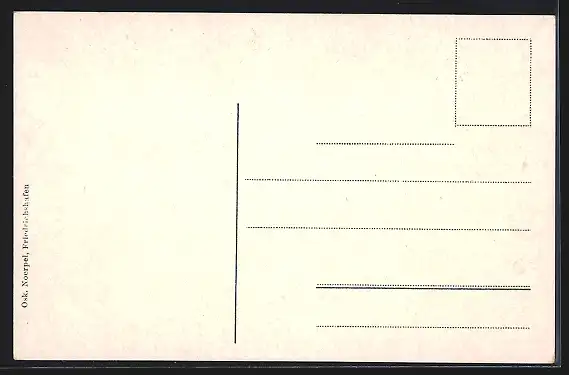 Personenbezogene Daten auf der Rückseite der Karte wurden durch blauen Textmarker unkenntlich gemacht. Die blauen Stellen sind auf die Vorderseite durchgeweicht und wirken sich negativ auf das Postkartenfoto aus