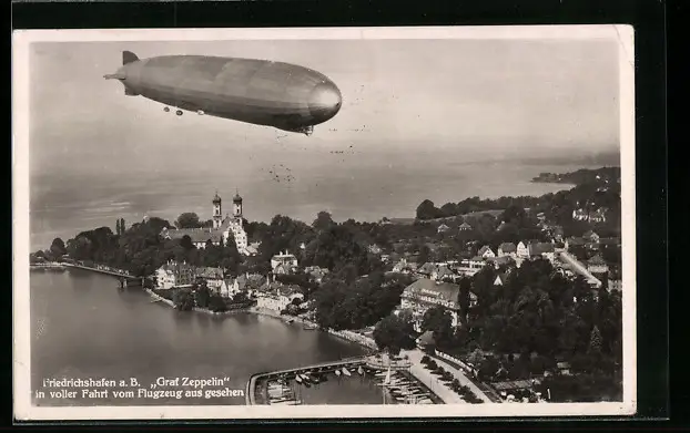 AK Friedrichshafen, Luftschiff Graf Zeppelin über der Stadt