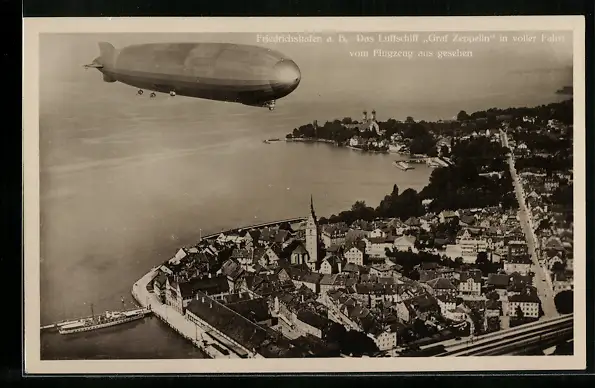 AK Friedrichshafen, Luftschiff LZ 127 Graf Zeppelin über dem Ort
