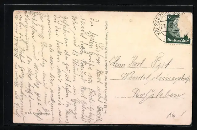 alte Ansichtskarte, gelaufen 1935, Briefmarke entfernt, guter Zustand