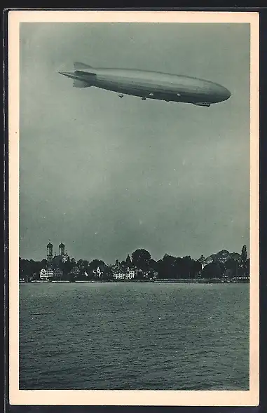 AK Friedrichshafen, Zeppelin-Luftschiff über dem Ort