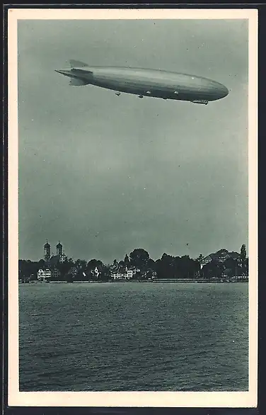 AK Friedrichshafen, Zeppelin-Luftschiff über der Stadt