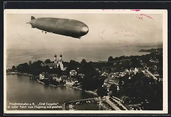 AK Friedrichshafen, Zeppelin in voller Fahrt über dem Bodensee